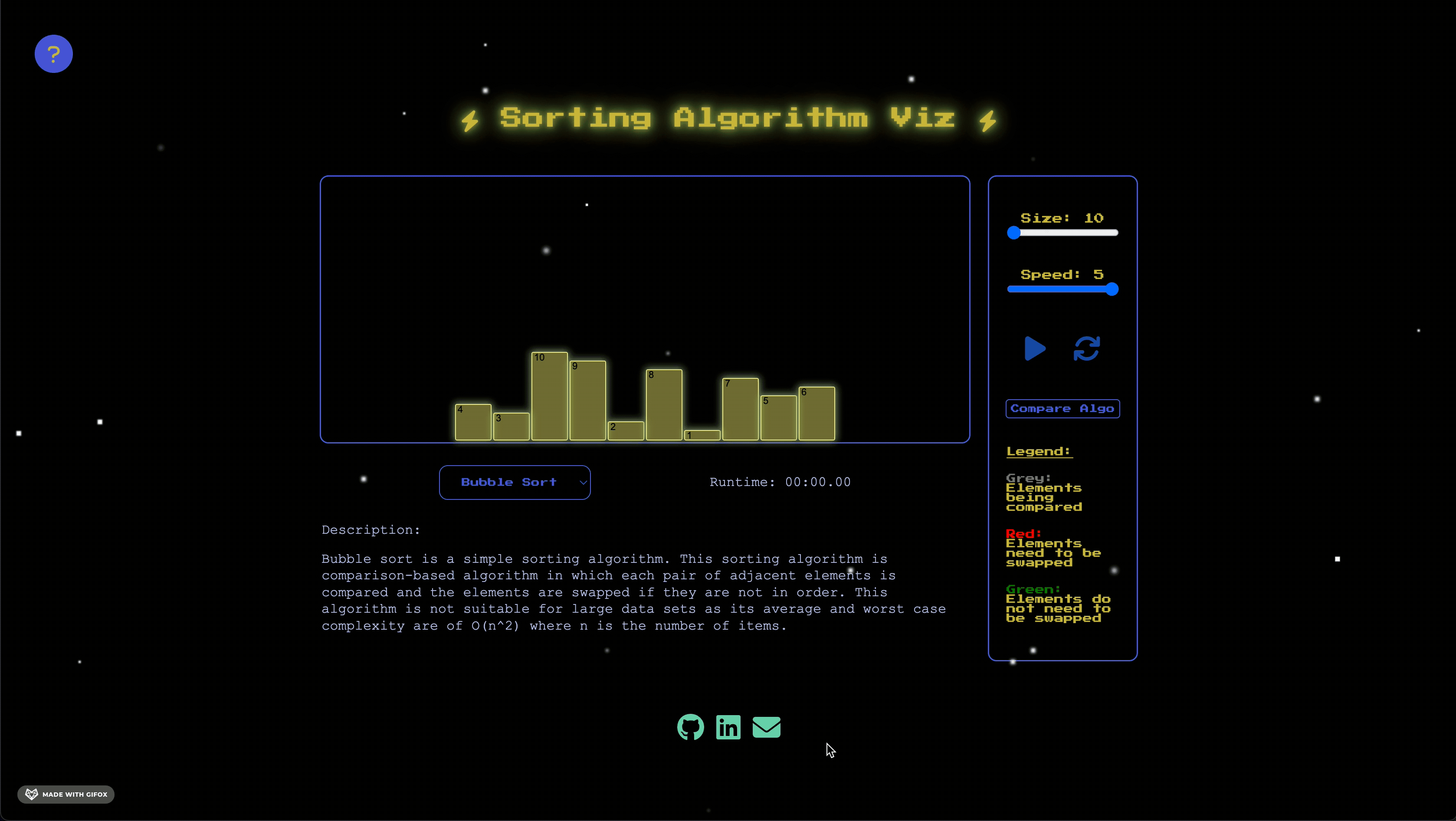 Bubble sort is a simple sorting algorithm. This sorting algorithm is comparison-based algorithm in which each pair of adjacent elements is compared and the elements are swapped if they are not in order. This algorithm is not suitable for large data sets as its average and worst case complexity are of Ο(n^2) where n is the number of items.
